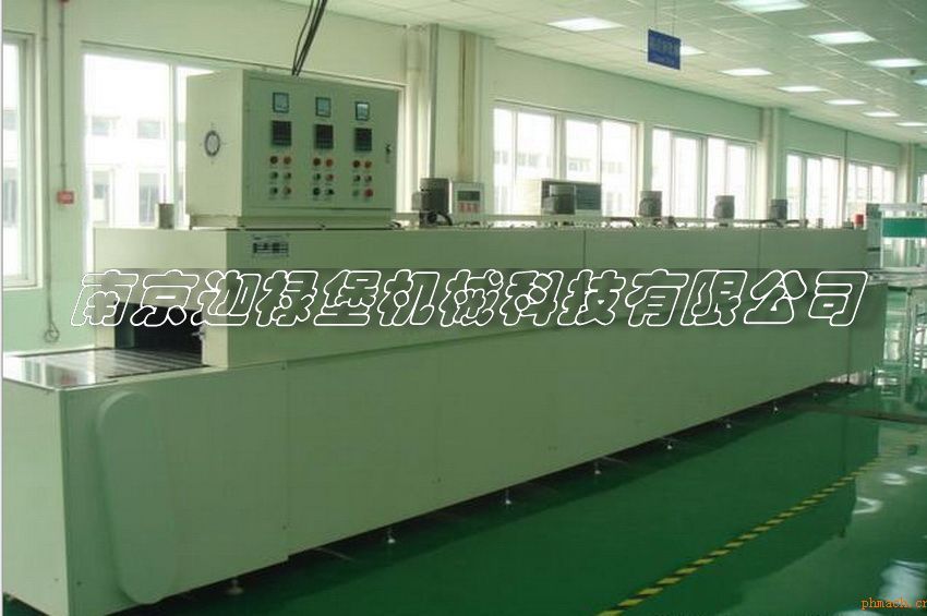 HDA/HDB系列遠(yuǎn)紅外隧道滅菌烘箱 一、主要用途 針對水針、粉針、口服液的西林瓶、黃圓瓶的烘干、滅菌和大批量的飲片、中藥材等烘干、滅菌。 二、工作原理 HDA系列熱風(fēng)循環(huán)隧道烘箱利用電加熱作為熱源,利用熱風(fēng)循環(huán)風(fēng)機(jī)對烘箱加熱段內(nèi)的100級凈化風(fēng)進(jìn)行對流熱轉(zhuǎn)換循環(huán),對所需滅菌的容器進(jìn)行熱傳遞,并不斷補(bǔ)充新鮮空氣,同時(shí)排除箱內(nèi)的潮濕空氣和飽和熱氣,從而達(dá)到對瓶子類物品進(jìn)行干燥滅菌。 三、特點(diǎn) 1、 采用西門子液晶顯示觸摸屏,PLC可編程控制器,對整機(jī)加熱、運(yùn)行等工藝參數(shù)進(jìn)行*的可編程設(shè)定控制。 2、 整機(jī)內(nèi)風(fēng)量可設(shè)定自動(dòng)分段變頻平衡調(diào)控。 3、 具有參數(shù)分段功能顯示,自動(dòng)打印記錄和故障報(bào)警等功能。 4、 完整的100級層流凈化系統(tǒng),進(jìn)風(fēng)口等冷卻段配備潔凈層流保護(hù),杜絕外界空氣進(jìn)入內(nèi)機(jī),確保工作室內(nèi)100級狀態(tài)下運(yùn)行。 5、 采用齒輪機(jī)構(gòu)輸送滅菌網(wǎng)帶,徹底消除網(wǎng)帶易跑偏的缺陷。 6、 本機(jī)完全達(dá)到醫(yī)藥行業(yè)標(biāo)準(zhǔn)要求,符合CGMP規(guī)范指標(biāo)。 四、主要技術(shù)參數(shù) 玻璃瓶 | 2-500ml | 電源條件 | 380V50Hz | 滅菌溫度 | 350℃ | 進(jìn)瓶口風(fēng)量 | 1500 m3/h | 滅菌時(shí)間 | ≥5-7min | 風(fēng)壓 | 258-303Pa | 運(yùn)行速度 | 50-250mm/min | 冷卻段風(fēng)量 | 2500 m3/h | 凈化等級 | 100級 | 風(fēng)壓 | 380-446Pa | 冷卻方式 | 垂直冷卻 | | |