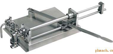 原理及特點: 該灌裝機容量為50g, 使用時旋轉(zhuǎn)容量調(diào)節(jié)鈕,觀看刻度表。指針對準(zhǔn)你所需灌裝的容量,然后扳動手柄試灌裝。
