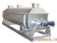 KJG系列空心槳葉干燥機(jī) KJG系列空心槳葉干燥機(jī)概述: 空心軸上密集排列著楔型中空槳葉,熱介質(zhì)經(jīng)空心軸流經(jīng)槳葉。單位有效容積內(nèi)傳熱面積很大,熱介質(zhì)溫度從-40℃到320℃,可以是水蒸汽,也可以是液體型:如熱水、導(dǎo)熱油等。間接傳導(dǎo)加熱,沒有攜帶空氣帶走熱量,熱量均用來加熱物料。熱量損失僅為通過器體保溫層向環(huán)境的散熱。楔型 槳葉傳熱面具有自清潔功能。物料顆粒與楔型面的相對(duì)運(yùn)動(dòng)產(chǎn)生洗刷作用,能夠洗刷掉楔型面上附著物料,使運(yùn)轉(zhuǎn)中一直保持著清潔的傳熱面。槳葉干燥機(jī)的殼體為W型,殼體內(nèi)一般安排二到四根空心攪拌軸。殼體有密封端蓋與上蓋,防止物料粉塵外泄及收集物料溶劑蒸汽。出料口處設(shè)置一擋扳,保證料位高度,使傳熱面被物料覆蓋而充分發(fā)揮作用。熱介質(zhì)通過旋轉(zhuǎn)接頭,流經(jīng)殼體夾套及空心攪拌軸,空心攪拌軸依據(jù)熱介質(zhì)的類型而具有不同的內(nèi)部結(jié)構(gòu),以保證*佳的傳熱效果。