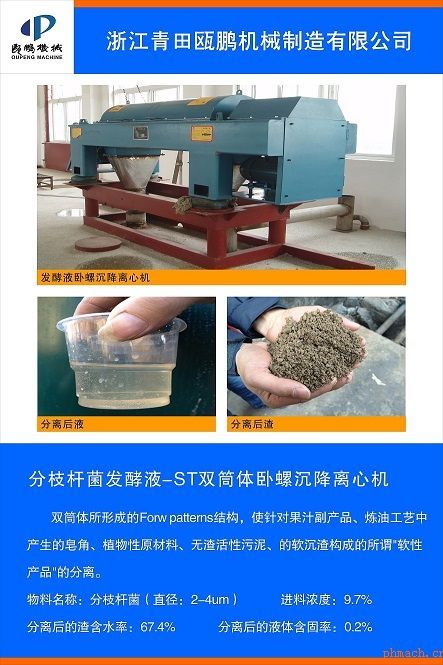 | ST 雙筒體臥螺沉降離心機(jī)用于君業(yè)發(fā)酵液