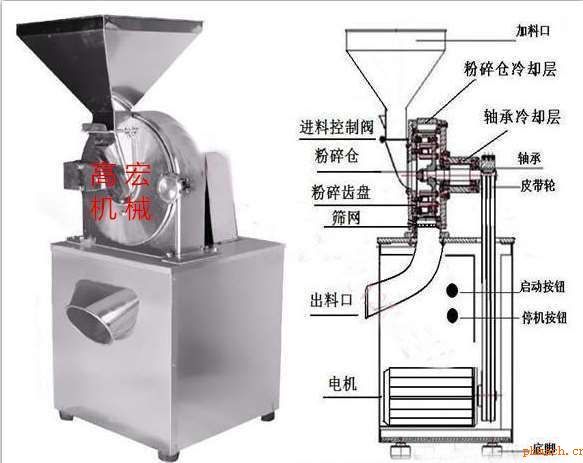 各種含油量不高的五谷雜糧以及其他一些硬性、脆性的物料。本機(jī)利用活動(dòng)齒盤(pán)和固定齒盤(pán)間的相對(duì)高速運(yùn)轉(zhuǎn),使被粉碎物