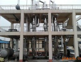 各效蒸發(fā)器、各效分離器、冷凝器、循環(huán)泵、轉(zhuǎn)料泵、真空及排水系統(tǒng)、分氣缸、操作平臺、電器儀表控制柜及閥門、管路等系統(tǒng)組成。