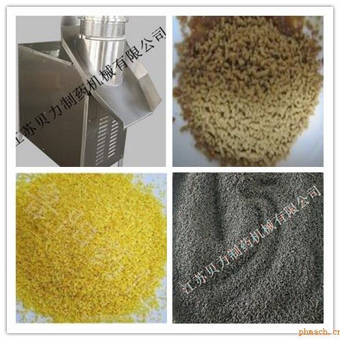 主要用途: 本機廣泛用于制藥、食品、沖劑、化工、固體飲料等行業(yè),將攪拌好的物料制成所需顆粒,亦可粉碎廢片和干快并碾擠成顆粒。特別適用對粘性較高的物料。本機凡與物料接觸部分均采用不銹鋼制作、外形美觀、結構合理、制粒成型效率高,顆粒美觀、自動出料,避免人工出粒造成顆粒破損,并適合流水工作。通過機械轉動使碾刀和壓料葉做相反旋轉,壓料葉成一定角度使物料向下壓入碾刀,碾刀上的大角螺旋葉將物料推向篩子筒壁,再通過刀片將物料從篩選孔擠出而成顆粒。 技術參數:
