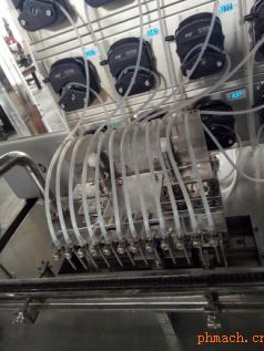 | 直線式灌裝加塞機(jī) 直線式灌裝加塞機(jī)是無菌制劑生產(chǎn)過程中經(jīng)常用到的一種設(shè)備,濟(jì)寧榮匯藥機(jī)生產(chǎn)這種設(shè)備多年,設(shè)備在運行過程中已經(jīng)非常成熟,歡迎您的品鑒。設(shè)備運行原理是從滅菌烘箱處理過的瓶子轉(zhuǎn)運到理瓶轉(zhuǎn)盤之后,瓶子在理瓶轉(zhuǎn)盤的緩慢帶動下,有序規(guī)則的分成一路,經(jīng)過星輪的處理,有序傳送的特制同步傳送帶上面,特種同步帶配備根據(jù)瓶子大小特制的模塊,瓶子在同步帶的帶動下依次經(jīng)過灌裝、蓋塞等步驟,輸送到下一道工序。 設(shè)備性能特點 1、設(shè)備穩(wěn)定可靠,保證設(shè)備在保養(yǎng)和運行期間能夠保證設(shè)備的穩(wěn)定性在95%以上。 2、灌裝頭數(shù)可以根據(jù)灌裝產(chǎn)量分為6、8、12、16、24等,根據(jù)生產(chǎn)量來調(diào)整設(shè)計。灌裝產(chǎn)能滿足12000-24000瓶/min 以7ml西林瓶計。 3、加塞合格率≥99.9%,加塞方式為旋轉(zhuǎn)式真空吸盤加塞,加塞穩(wěn)定,無偏塞、無騎塞、無冒塞。 4、無瓶止灌率100%,無瓶停機(jī)、無塞停機(jī)、破瓶率≤0.01%、灌裝精度±1%以內(nèi)。 5、灌裝方式為伺服電機(jī)驅(qū)動陶瓷泵灌裝,灌裝針的上下移動和灌裝針頭的來回跟蹤移動都由伺服電機(jī)驅(qū)動。 6、電器配置,PLC、觸摸屏、變頻器均為日本三菱。 7、具有前面理瓶轉(zhuǎn)盤塞瓶停機(jī)功能以及出瓶塞瓶停機(jī)功能,前后保護(hù)增加了設(shè)備的穩(wěn)定性。 整機(jī)漂亮大方,外觀美觀,外護(hù)板采用1.5-2mm的不銹鋼板制作。經(jīng)久耐用。