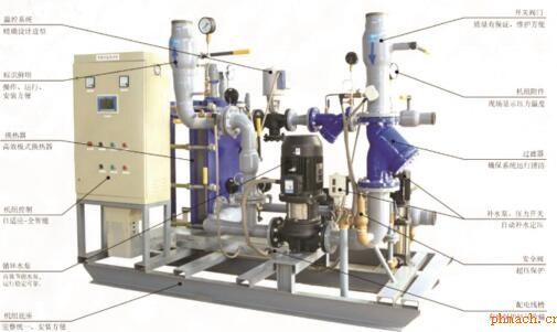 、換熱機組工作原理 換熱機組是集成換熱器、循環(huán)泵、補水泵、電控柜、溫控裝置、各種傳感器、熱量計及各類儀表和管路閥門于一體,并組裝在公共底座上的熱交換成套組合裝置。一次側熱源(蒸汽或高溫水等)經(jīng)過過濾器過濾后,進入換熱器與二次側循環(huán)水進行熱交換,然后返回一次側回水管網(wǎng)。二次側循環(huán)水經(jīng)過過濾器過濾,循環(huán)泵加壓后,進入換熱器與一次熱源進行熱交換,然后進入二次側供水管網(wǎng)。補水定壓泵自動向二次側回水管網(wǎng)補水定壓,維持系統(tǒng)安全穩(wěn)定運行。 二、換熱機組特點及優(yōu)勢 1.精心設計,熱工軟件、近千例工程熱工經(jīng)驗、熱能利用率高達95%以上、能源消耗降低20%以上 2.精細加工,先進加工設備、科學管理體制、機組運行可靠、維修費用低廉 3.結構緊湊、節(jié)省占地面積、大大降低了初期工程投資 4.全智能化控制、無人值守、遠程監(jiān)控、數(shù)據(jù)通訊、分戶計算 5.安裝快捷,機組運達現(xiàn)場,接通管網(wǎng)及電源,便可正常運行 6.外形美觀,兼顧操作、維修、清洗,外觀設計工藝美術化 7.節(jié)能環(huán)保、換熱效率高、變頻控制運行、運行噪音低 8.*小溫差、高層建筑中間層換熱、空調、熱電聯(lián)產(chǎn)、分布式能源 |