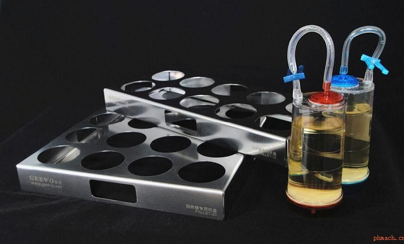 藥品無菌檢查中所用到集菌培養(yǎng)器,在過濾結(jié)束后可能會在操作臺暫時放置,然后移到培養(yǎng)箱進行14 天培養(yǎng)和觀察。由于集菌培養(yǎng)器底部不平穩(wěn),在這個過程中很容易翻倒,另外培養(yǎng)過程中需要把培養(yǎng)器取出培養(yǎng)箱進行觀察記錄,該托盤可以方便碼放和拿取。