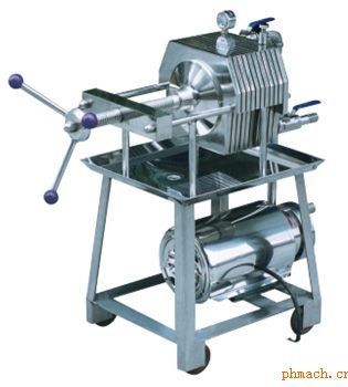 本機(jī)除配用電機(jī)外,其它機(jī)件均采用1Cr18Ni9Ti優(yōu)質(zhì)耐腐蝕不銹鋼材料制成,適用于過(guò)濾各種PH值酸堿溶液,本機(jī)應(yīng)用加壓密閉過(guò)濾,濾液損耗少,過(guò)濾質(zhì)量好,效率高。過(guò)濾部分由九層濾板組成,過(guò)濾面積大,流通量大;且可根據(jù)被濾溶液之不同生產(chǎn)工藝(初濾、半精濾、精濾)要求,更換不同濾膜、及根據(jù)用戶生產(chǎn)流量之大小可適當(dāng)減少或增加濾板層數(shù),使之適合生產(chǎn)之需要,因此本機(jī)具有一機(jī)多用適用范圍廣之特點(diǎn);濾板采用平面螺紋網(wǎng)狀形,結(jié)構(gòu)先進(jìn),不變形,容易清洗,能有效地增長(zhǎng)各種濾膜的使用壽命,從而降低和節(jié)約生產(chǎn)成本,本機(jī)配備之不銹鋼輸液泵,其配用電機(jī)小,耗電省。機(jī)座下裝有膠輪,操作方便,移動(dòng)靈活,可供移動(dòng)使用。 用途: 本機(jī)為不銹鋼多層板框式壓濾機(jī),適用于濃度50%以下粘度較低,含渣量較少的液體作密閉過(guò)濾以達(dá)到提純,滅菌、澄清等工藝操作,符合精濾、半精濾的要求,直接選用微孔濾膜,可不經(jīng)微孔薄膜過(guò)濾器過(guò)濾可達(dá)到無(wú)菌過(guò)濾之目的)。本機(jī)過(guò)濾面積大,流量大,適用范圍大,所以在制藥、化工、食品等行業(yè)有廣泛用途。 . |