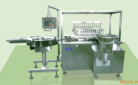 該機(jī)主要用于抗生素玻璃瓶水針和凍干粉針的水劑灌裝和加塞,是西林瓶水針和凍干粉針生產(chǎn)線的主要設(shè)備之一。該機(jī)灌裝部分采用十二頭直線連續(xù)跟蹤灌裝機(jī)構(gòu),使灌裝時(shí)間延長(zhǎng),灌注緩慢均勻,但灌裝效率卻大大提高,每分鐘可灌裝300瓶,*高可達(dá)到350瓶。由于斜帽式按塞輪上下可調(diào),輸瓶采用同步帶方式,更換瓶型時(shí),只需調(diào)整軌道寬度和按塞撥瓶盤即可。該機(jī)灌裝采用陶瓷泵,計(jì)量精度高,無磨損,按塞采用真空吸塞和旋轉(zhuǎn)連續(xù)同步壓塞方式,運(yùn)行平穩(wěn)。該機(jī)具有無滴漏,泡沫少,針頭提起時(shí)不滴藥,生產(chǎn)效率高,清洗滅菌方便,操作簡(jiǎn)單,維修保養(yǎng)方便等特點(diǎn)。該機(jī)采用PLC、人機(jī)界面控制,同時(shí)具備手動(dòng)操作功能。該機(jī)與藥物接觸部位和零部件均采用316L不銹鋼和其他耐腐蝕性材料制造,符合GMP要求。 |
