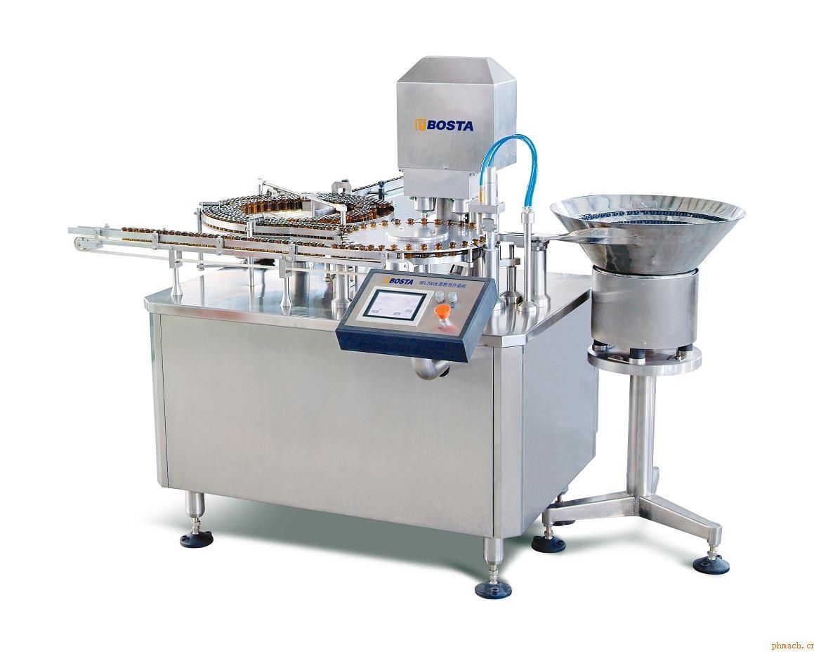 用途及特點(diǎn) 撥瓶星輪做間歇運(yùn)動(dòng),將玻瓶送入分裝、加塞工位,獨(dú)特的雙通道間歇定量供粉裝置定量供粉。使計(jì)量腔內(nèi)藥粉保持恒定,減少攪拌次數(shù),始終保持藥粉自然性,克服藥粉粘性增加、搭橋等缺點(diǎn)。分裝計(jì)量小到50mg左右仍然具有較高分裝精度。