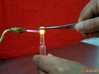 5. 將鑷子夾住的安瓿瓶置于氫氧焰中,進(jìn)行加熱,邊加熱邊旋轉(zhuǎn)安瓿瓶。當(dāng)加熱完畢時,用鑷子往上拉,即可完成封口的過程。請仔細(xì)查下面的視頻。 咨詢熱線: 13755110705 |