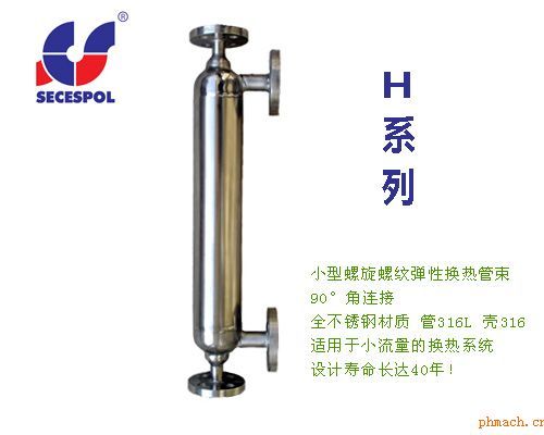 | 產(chǎn)品特征: H系列換熱器是由纏繞的特制螺紋管為主要構(gòu)造。這一構(gòu)造能夠有效的提高換熱效率。而K系列以外的換熱器,即沒(méi)有采用螺紋管構(gòu)造的換熱器,內(nèi)部采用的均為平滑管。 產(chǎn)品優(yōu)點(diǎn): 高傳熱率:與標(biāo)準(zhǔn)的管殼式以及板式換熱器相比而言,擁有更高的換熱系數(shù)。垂直安裝:節(jié)省安裝所需空間。操作簡(jiǎn)便:不同的產(chǎn)品型號(hào)擁有可在不同的壓力、溫度和流量下正常高效地工作。低運(yùn)行成本: V型接口和螺紋管的應(yīng)用保證了設(shè)備的清潔度。. 產(chǎn)品材質(zhì): 管體:不銹鋼,殼體: 不銹鋼, 接口:不銹鋼, 法蘭: 不銹鋼,碳鋼。 應(yīng)用范圍:
