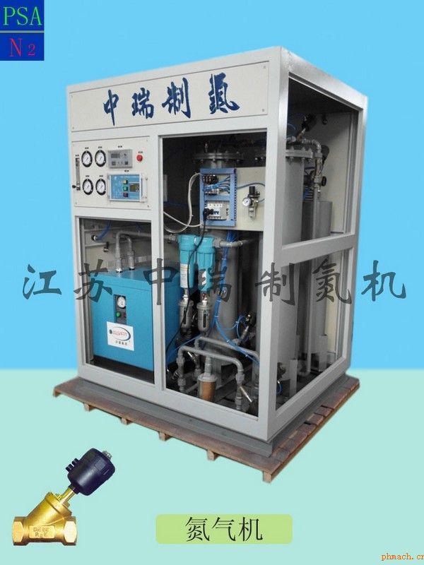 高純度氮氣機 應用于食品、醫(yī)藥、化工、電子、紡織、冶金等行業(yè),現場生產氮氣,速度快,PLC微電腦全自動控制,提供高純度氮氣。 產品名稱:中瑞牌高純度氮氣機,又名氮氣機,制氮機,充氮機,氮氣發(fā)生器,PSA變壓吸附制氮機, PSA制氮機,制氮設備,箱體式制氮機,氮氣制造機,氮氣設備,制氮系統(tǒng)。 工作原理:運用PSA變壓吸附原理,以空氣為原料,氧分子比氮分子尺寸小,加壓通過微細多孔的碳分子篩,氧分子被優(yōu)先吸附,氮氣通過分子篩間隙進入富集氮氣緩沖罐;一塔加壓吸附富集氮氣,一塔減壓脫附分子篩再生,PLC微電腦全自動控制,兩塔交替工作,連續(xù)產生氮氣,20-30分鐘就能產生高純度氮氣。 產品特點: ◆ 特殊裝填分子篩工藝,氣體分流設計,吸附率高,有效防止分子篩粉化; ◆ 多級過濾器,氣動角座閥控制,300萬次無故障運行; ◆ PLC微電腦全自動控制,可選遠程電腦聯機控制; ◆ 結構緊湊,占地面積小,整體撬裝; ◆ 機箱噴塑處理,食品衛(wèi)生級防護。 可選配置:氣體緩沖罐,無油空壓機,螺桿式壓縮機。 原產地:江蘇制氮機,無錫制氮機,江陰制氮機,蘇州制氮機。 技術參數: