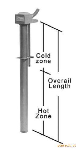 2.根據(jù)安裝位置,化學(xué)液體性質(zhì),液體中固態(tài)物質(zhì)沉積特性設(shè)計(jì)發(fā)熱管的表面功率,確定管徑。管徑常用規(guī)格有:Φ11mm, Φ17mm, Φ25mm, Φ30mm, Φ32mm, Φ45mm, Φ50mm。