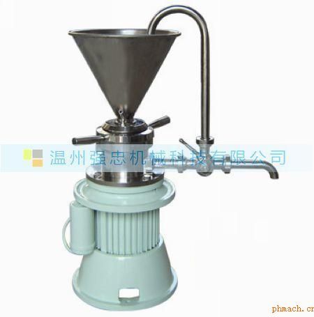 立式膠體磨是由電機(jī)帶動(dòng)轉(zhuǎn)齒(或稱為轉(zhuǎn)子)與相配的定齒(或稱為定子)作相對(duì)的高速旋轉(zhuǎn),其中一個(gè)高速旋轉(zhuǎn),另一個(gè)靜止,被加工物料通過本身的重量或外部壓力(可由泵產(chǎn)生)加壓產(chǎn)生向下的螺旋沖擊力,透過定、轉(zhuǎn)齒之間的間隙(間隙可調(diào))時(shí)受到強(qiáng)大的剪切力、摩擦力、高頻振動(dòng)、高速旋渦等物理作用,使物料被有效地乳化、分散、均質(zhì)和粉碎,達(dá)到物料超細(xì)粉碎及乳化的效果。