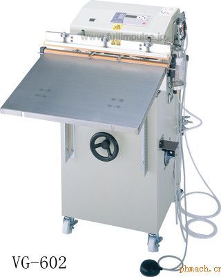 照片為VG-602用途、特長(zhǎng):電動(dòng)抽真空(充氣)封口機(jī) 操作方法:電動(dòng)、汽缸式驅(qū)動(dòng) 包裝形態(tài):封口專用、抽真空、充氣 選定機(jī)種標(biāo)準(zhǔn)/日:電動(dòng)、汽缸式驅(qū)動(dòng)=1000袋以下 包裝袋尺寸: VG-602系列:60cm以下 VG-402系列:40cm以下 *新型號(hào):B型適用包裝材料(2層以上合計(jì)): VG-602、VG-402:PE->0.4mm、PP->0.3mm、NY->0.3mm、PVA->0.3mm、其它復(fù)合袋->0.4mm、 VG-602、VG-402-10W:PE->0.6mm、PP->0.4mm、NY->0.4mm、PVA->0.4mm、其它復(fù)合袋->0.5mm