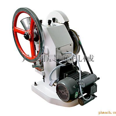 單沖壓片機(jī)屬機(jī)器壓片原理,可將各類(lèi)粉末、顆粒狀原料壓制成圓形、異形等不同形狀片劑。目前分1.5T\5T\6T等不同壓力規(guī)格,壓片厚薄、壓力大小、物料填充深度等均可根據(jù)用戶需要調(diào)節(jié)。該機(jī)是一種臺(tái)式連續(xù)投料生產(chǎn)型壓片機(jī),在電源缺乏時(shí)也可手動(dòng)操作出片,壓出的藥片厚度平均,光澤度高,無(wú)需拋光。單沖頭壓片機(jī)分鐵質(zhì)和鋁合金材質(zhì),可廣泛用于化工廠、醫(yī)藥公司、實(shí)驗(yàn)室、大學(xué)研究所、藥房等壓制各類(lèi)片劑使用。 單沖壓片機(jī)的主件為流線型機(jī)身,整體鑄造而成。其上有主軸串連著三個(gè)心形凸輪,軸的右端裝有飛輪,附有活動(dòng)手柄,可作手搖調(diào)整工作,軸的左端裝有從動(dòng)齒輪,有電機(jī),通過(guò)皮帶輪由三角帶傳動(dòng)到小齒輪至從動(dòng)齒輪,帶動(dòng)主軸。主要工作過(guò)程分為:A.充填;B.沖壓成型;C.出件或出片。三道程序連續(xù)進(jìn)行,其每道程序均可調(diào)節(jié),適合各種元件及片劑的制造需求。 單沖壓片機(jī)參數(shù):